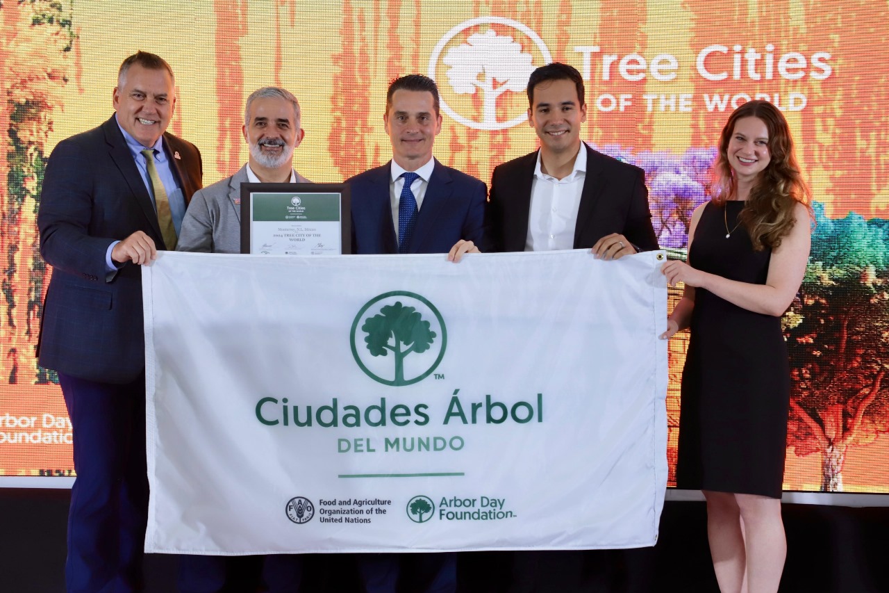 El Gobierno de Monterrey recibió anoche el distintivo internacional “Tree Cities of the World 2024” que otorga la agrupación Reforestamos México, Arbor Day Foundation y la Organización de las Naciones Unidas para la Alimentación y la Agricultura (FAO).