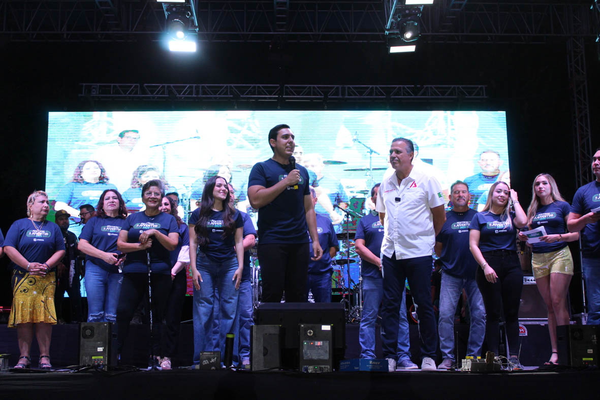 Los asistentes disfrutaron de las actuaciones del cantante Adrián Santos y Passión Vallenata. Después de su mensaje, los integrantes del grupo De Parranda, le pidieron al Alcalde y su esposa Vianey Zambrano que bailaran el primer tema.