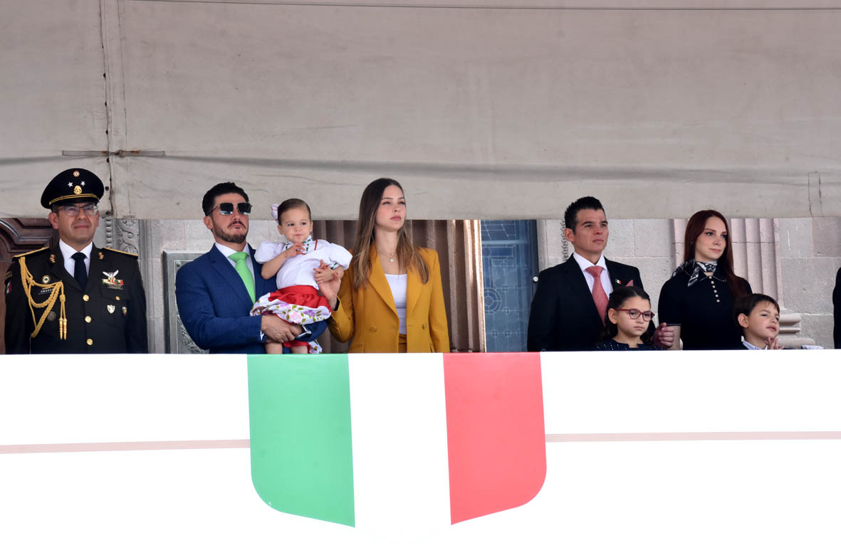 • Durante el Desfile Cívico el Gobernador de Nuevo León estuvo acompañado de Mariana Rodríguez Cantú; el Secretario General de Gobierno, Miguel Flores; mandos militares y funcionarios del Gabinete Estatal.