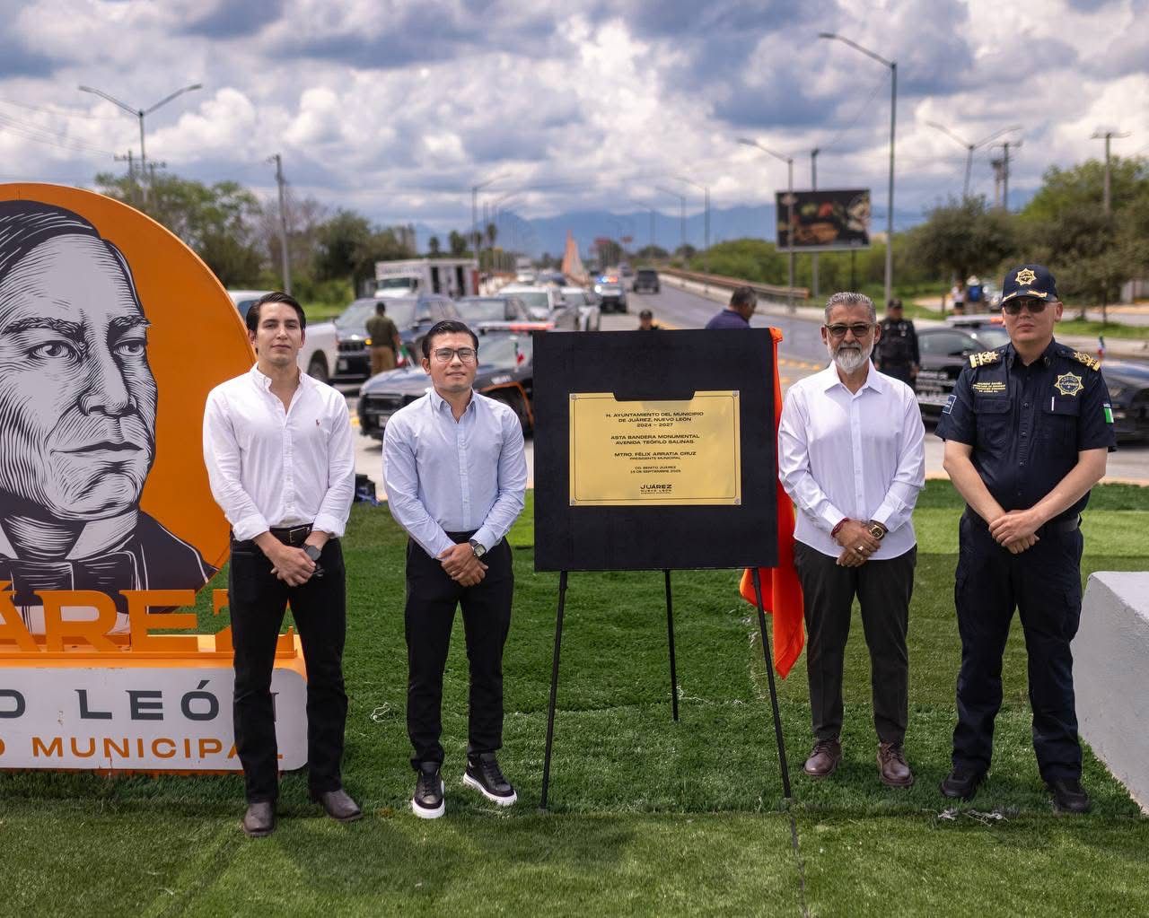 Juárez, Nuevo León, a 16 de septiembre del 2025.- En el marco del 215 aniversario del inicio de la Independencia de México, el alcalde de Juárez, Félix Arratia Cruz, encabezó la ceremonia de develación de placa e izamiento del Asta Bandera Monumental ubicada en la Avenida Teófilo Salinas, símbolo de unidad, identidad y orgullo para todas y todos los juarenses.
