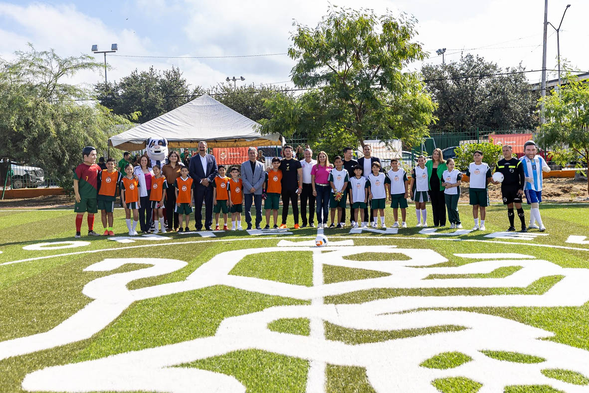 Samuel García inauguró la cancha número 318 como parte del impulso al deporte infantil en Nuevo León.