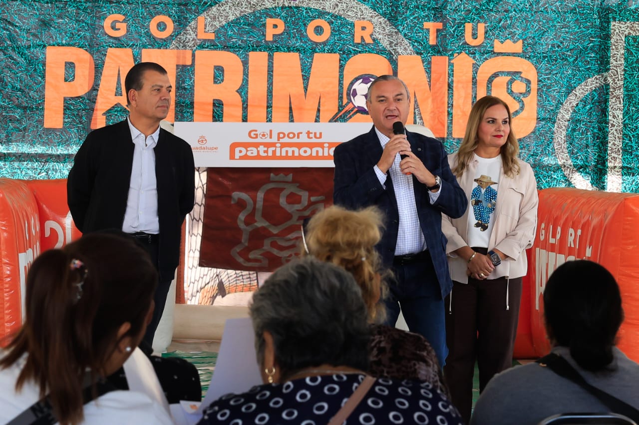 A fin de brindar seguridad patrimonial a vecinos de Guadalupe cuyos predios no contaban con papelería en regla, el municipio celebró “Gol por tu patrimonio”, evento en el que se entregaron escrituras a través de dinámicas deportivas referentes a la celebración de la Copa Mundial FIFA 2026 que se juega en Guadalupe.