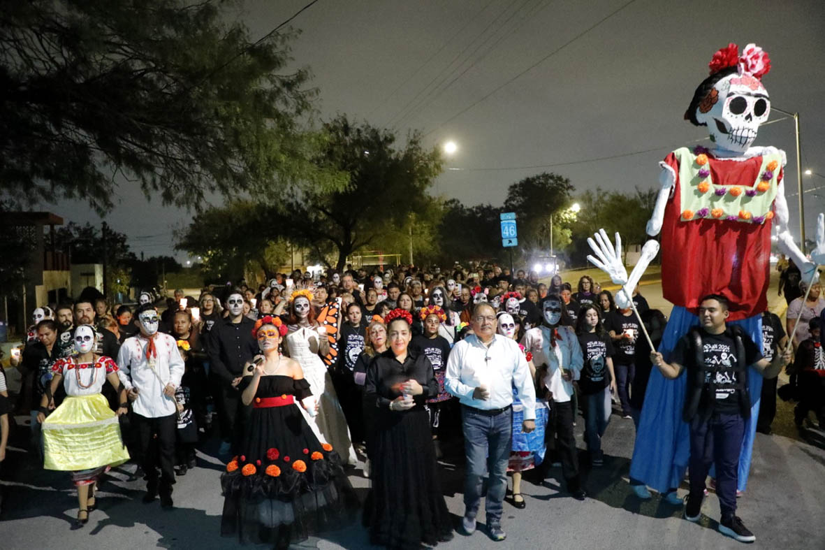 Durante el trayecto, el desfile hará una pausa especial en el Panteón Jardín del Edén, donde el Alcalde Andrés Mijes encabezarán una emotiva procesión iluminada por decenas de velas, en ho
