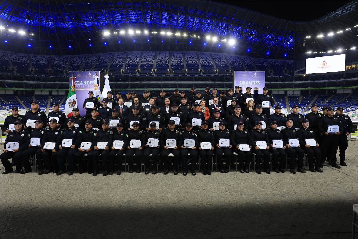 Un total de 56 policías de Guadalupe fueron promovidos a un nuevo grado durante la Ceremonia de Promoción de Ascensos 2025, realizada en el Salón Capitanes del Estadio BBVA.