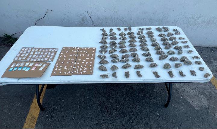 Además, localizaron 41 bolsas transparentes con una sustancia parecida a la droga tipo cristal, así como 15 envoltorios con polvo blanco parecido a la cocaína, por lo que fue detenido.
