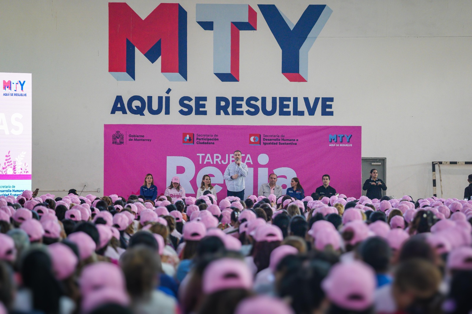 A la entrega de la Tarjeta Regia Plus acudieron el jefe de gabinete, Fernando Margáin; los secretarios de Administración, Marcelo Segovia Páez; de Participación Ciudadana, Rafa Ramos y de Desarrollo Humano e Igualdad Sustantiva, Karina Barrón.