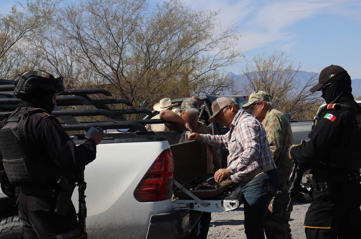 inspección y vigilancia en la carretera Monterrey–Colombia, a la altura del entronque a Candela en el municipio de Lampazos, con motivo del cierre de la temporada de caza.