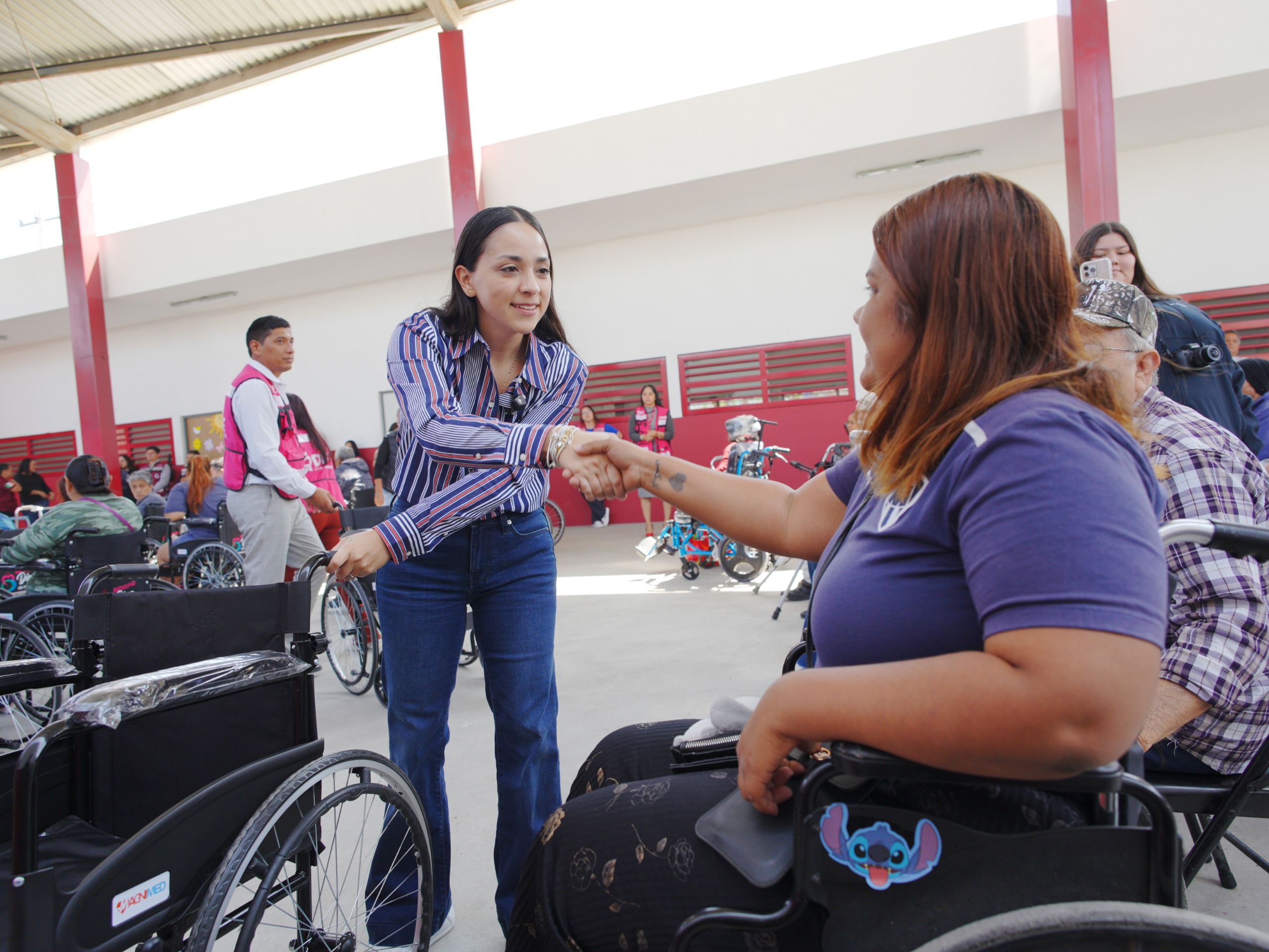 Durante un evento llevado a cabo en el Centro Comunitario de la colonia Ampliación Los Nogales, la presidenta honoraria del DIF encabezó la entrega de 55 apoyos funcionales, entre sillas de ruedas, andadores y bastones, destinados a personas adultas mayores con limitaciones temporales o permanentes de movilidad, previamente valoradas por el área correspondiente de la institución.